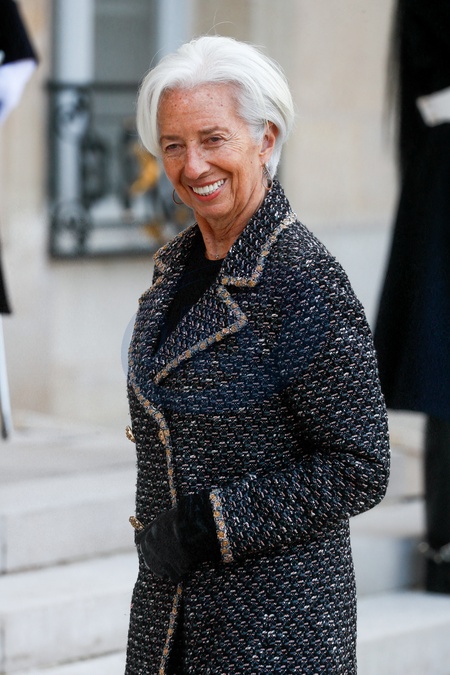 Christine Lagarde, présidente de la Banque centrale européenne - Dans le cadre de l'hommage national à M. Jacques Delors, le Président de la République reçoit pour un déjeuner les chefs d'Etat et de gouvernement européens et les représentants des institutions européennes au palais présidentiel de l'Elysée à Paris, France, le 5 janvier 2024. Delors, figure de la création de l'euro (€), est décédé le 27 décembre 2023 à l'âge de 98 ans.© Christophe Clovis/Bestimage Lunch following a national tribute ceremony for late French minister and European Union Commission president Jacques Delors at the Elysee palace in Paris, France, on January 5, 2024. Delors, a figure in the creation of the euro (€), died on December 27, 2023 aged 98.
