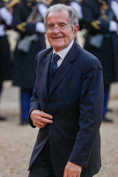 Romano Prodi, ancien Premier ministre d'Italie - Dans le cadre de l'hommage national à M. Jacques Delors, le Président de la République reçoit pour un déjeuner les chefs d'Etat et de gouvernement européens et les représentants des institutions européennes au palais présidentiel de l'Elysée à Paris, France, le 5 janvier 2024. Delors, figure de la création de l'euro (€), est décédé le 27 décembre 2023 à l'âge de 98 ans.© Christophe Clovis/Bestimage Lunch following a national tribute ceremony for late French minister and European Union Commission president Jacques Delors at the Elysee palace in Paris, France, on January 5, 2024. Delors, a figure in the creation of the euro (€), died on December 27, 2023 aged 98.