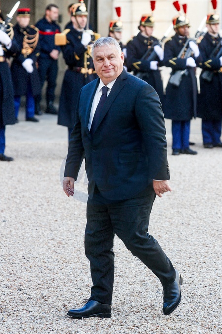 Viktor Orban, Premier ministre de Hongrie - Dans le cadre de l'hommage national à M. Jacques Delors, le Président de la République reçoit pour un déjeuner les chefs d'Etat et de gouvernement européens et les représentants des institutions européennes au palais présidentiel de l'Elysée à Paris, France, le 5 janvier 2024. Delors, figure de la création de l'euro (€), est décédé le 27 décembre 2023 à l'âge de 98 ans.© Christophe Clovis/Bestimage Lunch following a national tribute ceremony for late French minister and European Union Commission president Jacques Delors at the Elysee palace in Paris, France, on January 5, 2024. Delors, a figure in the creation of the euro (€), died on December 27, 2023 aged 98.
