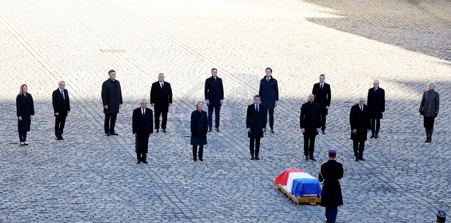 Narodowy hołd dla pana Jacques’a Delorsa na głównym dziedzińcu Hôtel National des Invalides w Paryżu