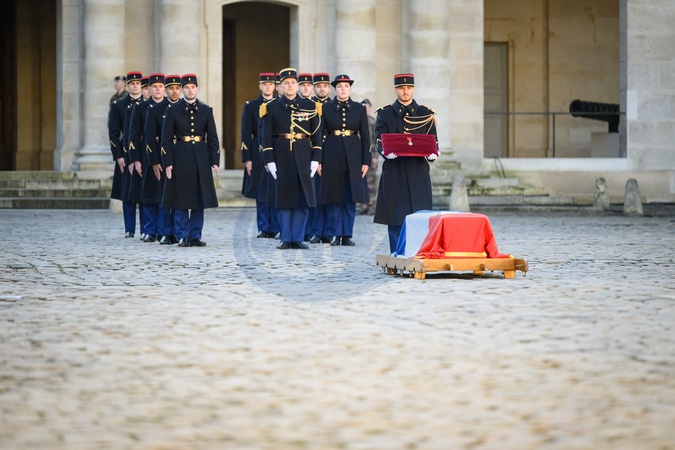Hommage national à M. Jacques Delors, dans la cour d'honneur de l'Hôtel national des Invalides à Paris, France, le 5 janvier 2024. © Eric Tschaen/Pool/Bestimage National tribute to Jacques Delors, in the main courtyard of the Hôtel national des Invalides in Paris, France, on January 5th, 2024.