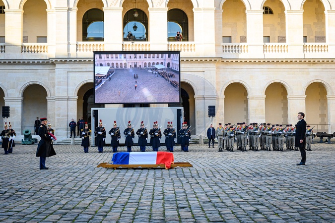 Narodowy hołd dla pana Jacques’a Delorsa na głównym dziedzińcu Hôtel National des Invalides w Paryżu