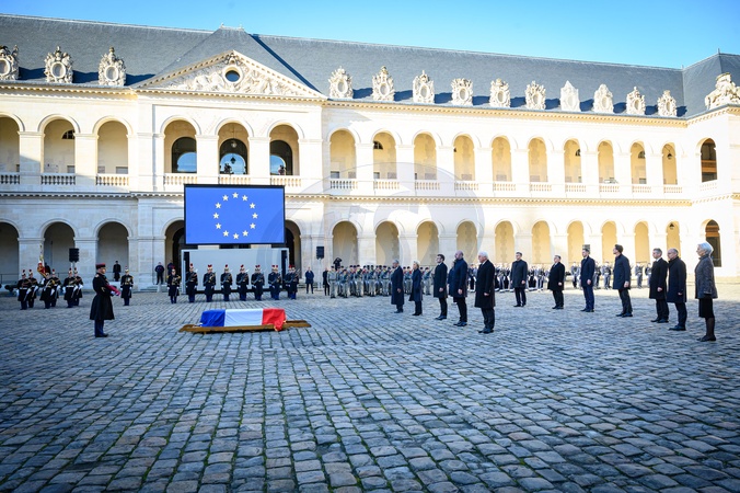 Narodowy hołd dla pana Jacques’a Delorsa na głównym dziedzińcu Hôtel National des Invalides w Paryżu