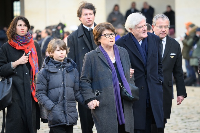 Martine Aubry avec son mari Jean louis Brochen, - Hommage national à M. Jacques Delors, dans la cour d'honneur de l'Hôtel national des Invalides à Paris, France, le 5 janvier 2024. © Eric Tschaen/Pool/Bestimage National tribute to Jacques Delors, in the main courtyard of the Hôtel national des Invalides in Paris, France, on January 5th, 2024.