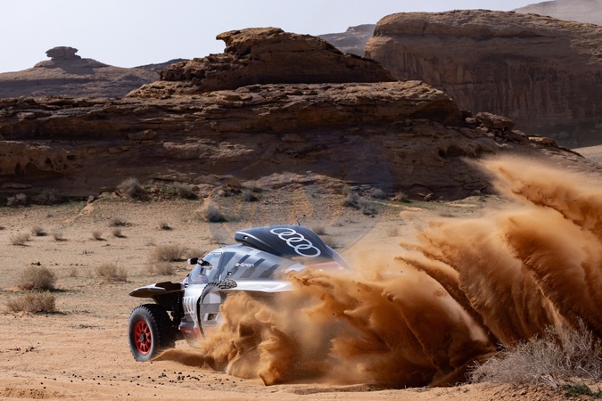 202 PETERHANSEL Stéphane (fra), BOULANGER Edouard (fra), Team Audi Sport, Audi RS Q E-Tron E2, FIA Ultimate, FIA W2RC, action during the Prologue of the Dakar 2024 on January 5, 2024 in Al-Ula, Saudi Arabia. © Marcin Kin/DPPI/Panoramic/Bestimage