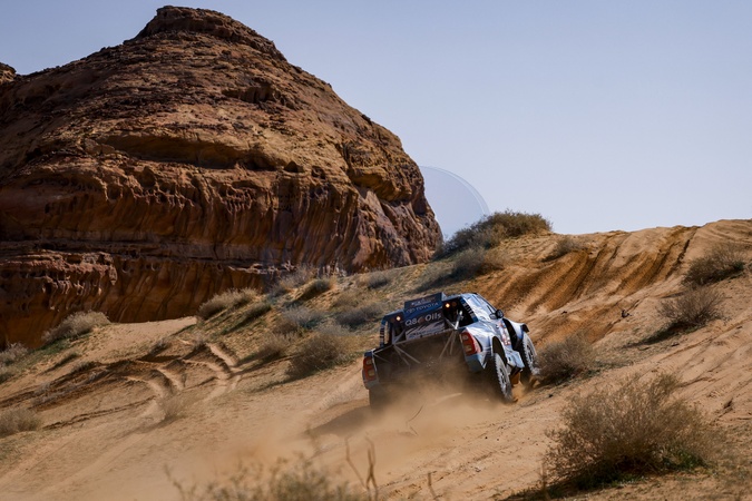 229 BAUD Lionel (fra), BAUD Lucie (fra), Overdrive Racing, Toyota Hilux, FIA Ultimate, FIA W2RC, action during the Prologue of the Dakar 2024 on January 5, 2024 in Al-Ula, Saudi Arabia. © Marcin Kin/DPPI/Panoramic/Bestimage