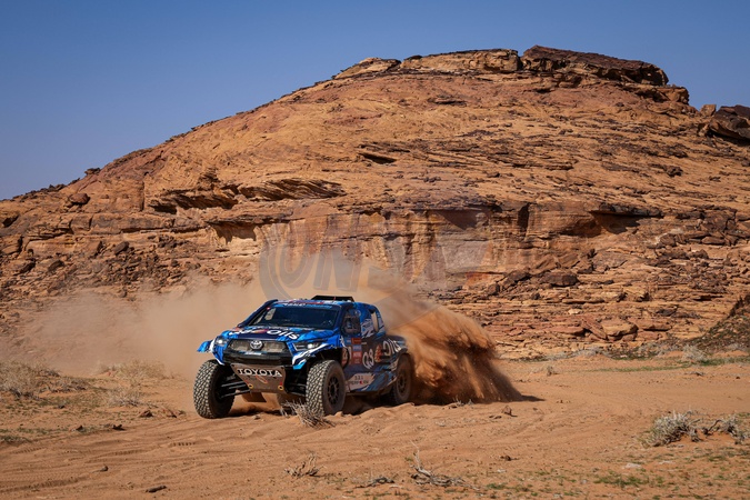 229 BAUD Lionel (fra), BAUD Lucie (fra), Overdrive Racing, Toyota Hilux, FIA Ultimate, FIA W2RC, action during the Stage 1 of the Dakar 2024 on January 6, 2024 between Al-Ula and Al Henakiyah, Saudi Arabia. © Antonin Vincent/DPPI/Panoramic/Bestimage