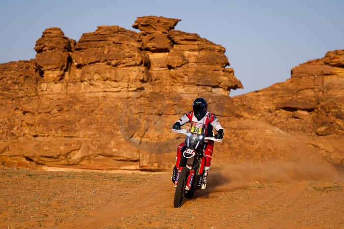 14 BUHLER Sebastian (ger), Hero Motorsports Team Rally, Hero, Motul, Moto, FIM W2RC, action during the Stage 1 of the Dakar 2024 on January 6, 2024 between Al-Ula and Al Henakiyah, Saudi Arabia. © Antonin Vincent/DPPI/Panoramic/Bestimage