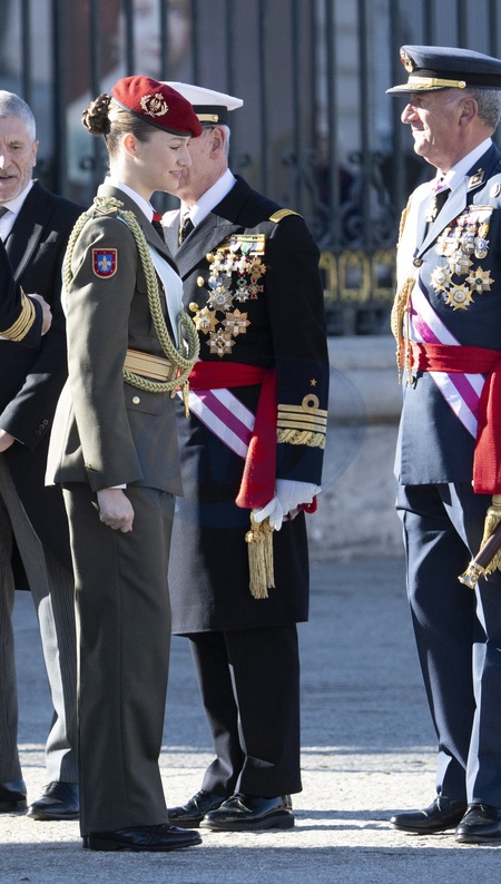 Le roi Felipe VI, la reine Letizia d'Espagne et la princesse Leonor assistent à la cérémonie militaire "Pascua Militar" au Palais Royal de Madrid