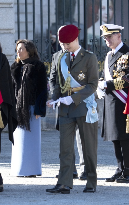 Król Felipe VI, królowa Hiszpanii Letizia i księżniczka Leonor biorą udział w ceremonii wojskowej „Pascua Militar” w Pałacu Królewskim w Madrycie