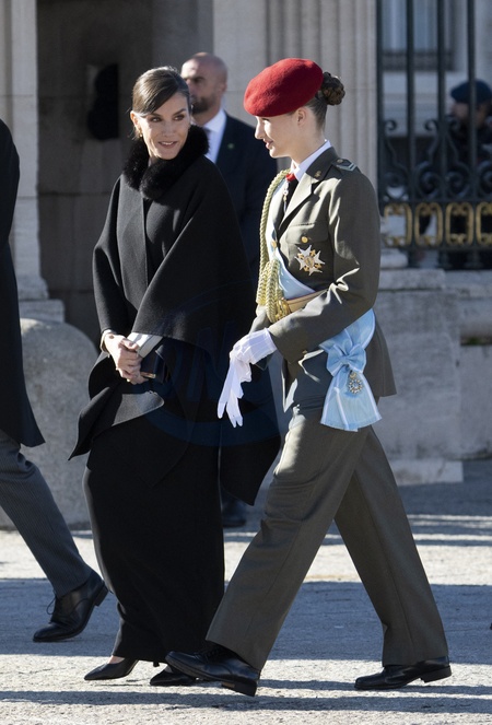 Le roi Felipe VI, la reine Letizia d'Espagne et la princesse Leonor assistent à la cérémonie militaire "Pascua Militar" au Palais Royal de Madrid
