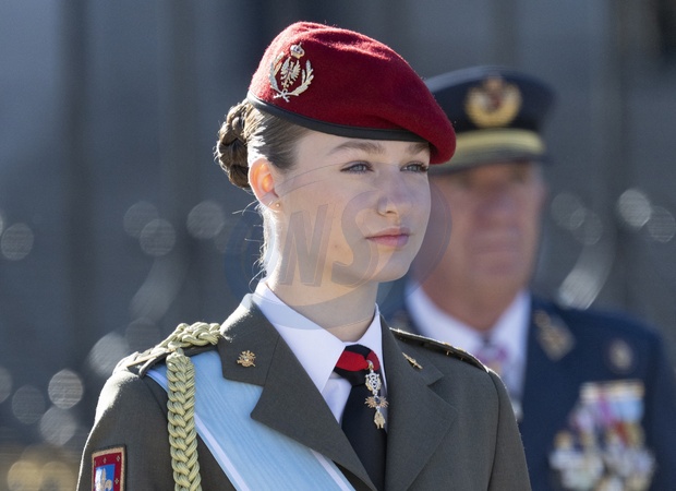 Król Felipe VI, królowa Hiszpanii Letizia i księżniczka Leonor biorą udział w ceremonii wojskowej „Pascua Militar” w Pałacu Królewskim w Madrycie