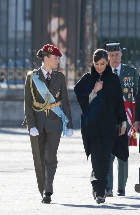Le roi Felipe VI, la reine Letizia d'Espagne et la princesse Leonor assistent à la cérémonie militaire "Pascua Militar" au Palais Royal de Madrid