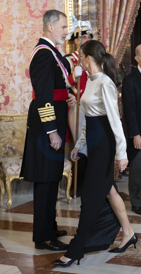 Le roi Felipe VI, la reine Letizia d'Espagne et la princesse Leonor assistent à la cérémonie militaire "Pascua Militar" au Palais Royal de Madrid