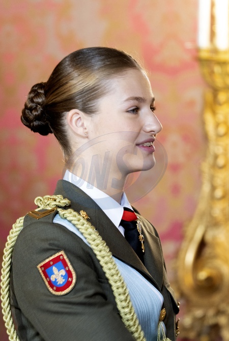Le roi Felipe VI, la reine Letizia d'Espagne et la princesse Leonor lors de la réception militaire de Pâques au Palais Royal, le 6 janvier 2024 à Madrid, Espagne, le 6 janvier 2024. Crownprincess Leonor - Spanish Royals host the traditional annual Military Pasques parade and reception at The Royal Palace in Madrid. January 6, 2024.