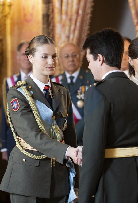 Król Felipe VI, królowa Hiszpanii Letizia i księżniczka Leonor biorą udział w ceremonii wojskowej „Pascua Militar” w Pałacu Królewskim w Madrycie