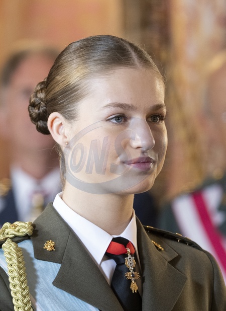 Le roi Felipe VI, la reine Letizia d'Espagne et la princesse Leonor lors de la réception militaire de Pâques au Palais Royal, le 6 janvier 2024 à Madrid, Espagne, le 6 janvier 2024. Crownprincess Leonor - Spanish Royals host the traditional annual Military Pasques parade and reception at The Royal Palace in Madrid. January 6, 2024.
