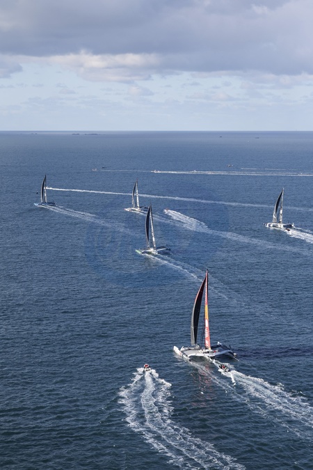 Start do samodzielnego wyścigu dookoła świata „L’Arkéa Ultim Challenge” w porcie w Brest