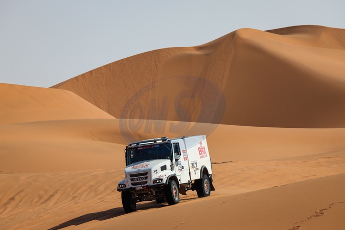623 SABATE Pep (spa), ROURA Pol Tibau (spa), MONTANER BUSQUETS Jordi (spa), Bahrain Raid Xtreme, Iveco 4x4 DRNL, FIA Truck, action during the Stage 2 of the Dakar 2024 on January 7, 2024 between Al Henakiyah and Al Duwadimi, Saudi Arabia. © Florent Gooden/DPPI/Panoramic/Bestimage