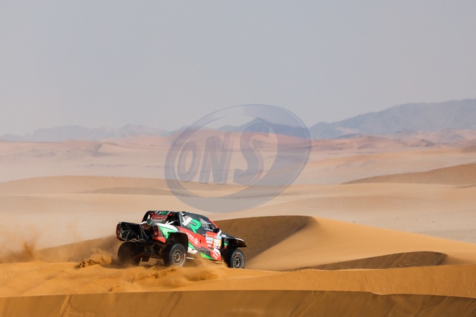 201 AL RAJHI Yazeed (sau), GOTTSCHALK Timo (ger), Overdrive Racing, Toyota Hilux, FIA Ultimate, FIA W2RC, action during the Stage 2 of the Dakar 2024 on January 7, 2024 between Al Henakiyah and Al Duwadimi, Saudi Arabia. © Florent Gooden/DPPI/Panoramic/Bestimage