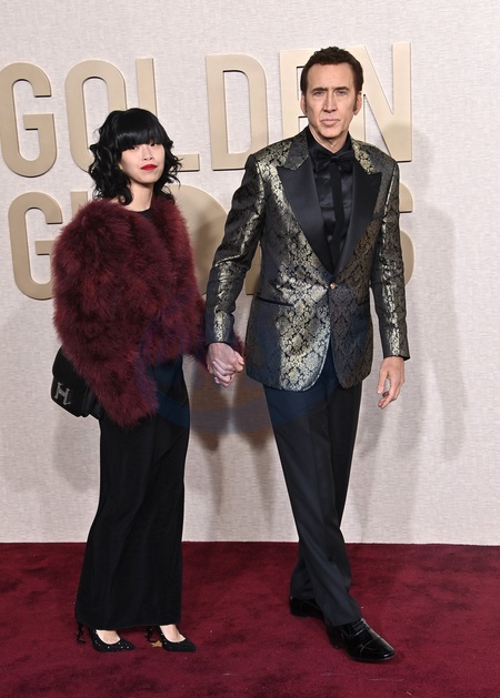 Nicolas Cage and Riko Shibata - Golden Globe Awards 2024 - Arrivals