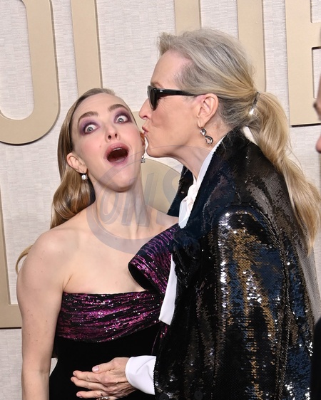 Amanda Seyfried and Meryl Streep arriving at the 81st Golden Globe Awards held at the Beverly Hilton Hotel on January 7, 2024 in Beverly Hills, CA.© OConnor-Arroyo / AFF-USA.com