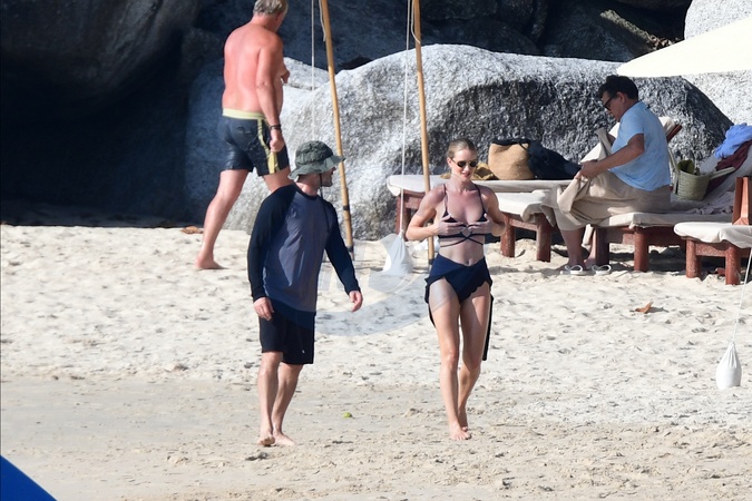 Exclusif - Prix spécial - No Web - Exclusif - Prix spécial - No Web - Jason Statham et sa compagne Rosie Huntington-Whiteley s'essaient à la planche volante ou foil électrique lors de leurs vacances à Phuket, Thaïlande le 2 janvier 2024. Exclusive - For Germany call for price - No web - Jason Statham and his partner Rosie Huntington-Whiteley try out an electric hoverboard or foil during their vacation in Phuket, Thailand on January 2, 2024.