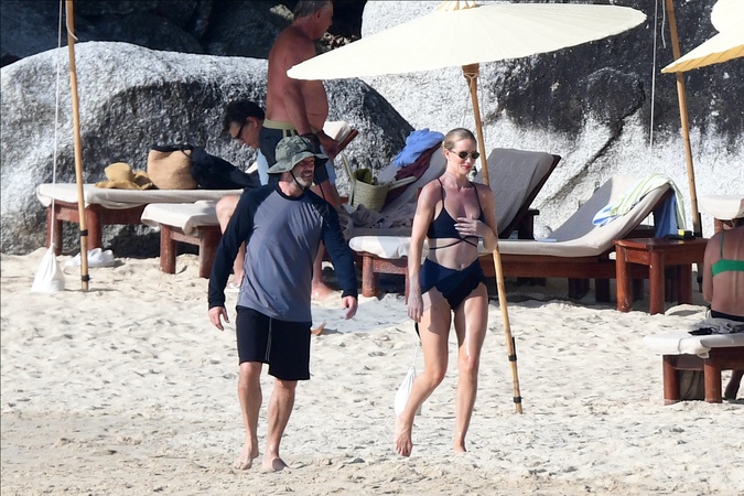 Exclusif - Prix spécial - No Web - Exclusif - Prix spécial - No Web - Jason Statham et sa compagne Rosie Huntington-Whiteley s'essaient à la planche volante ou foil électrique lors de leurs vacances à Phuket, Thaïlande le 2 janvier 2024. Exclusive - For Germany call for price - No web - Jason Statham and his partner Rosie Huntington-Whiteley try out an electric hoverboard or foil during their vacation in Phuket, Thailand on January 2, 2024.