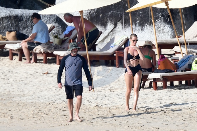 Exclusif - Prix spécial - No Web - Exclusif - Prix spécial - No Web - Jason Statham et sa compagne Rosie Huntington-Whiteley s'essaient à la planche volante ou foil électrique lors de leurs vacances à Phuket, Thaïlande le 2 janvier 2024. Exclusive - For Germany call for price - No web - Jason Statham and his partner Rosie Huntington-Whiteley try out an electric hoverboard or foil during their vacation in Phuket, Thailand on January 2, 2024.