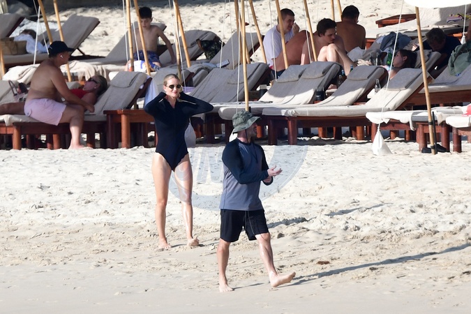 Exclusif - Prix spécial - No Web - Exclusif - Prix spécial - No Web - Jason Statham et sa compagne Rosie Huntington-Whiteley s'essaient à la planche volante ou foil électrique lors de leurs vacances à Phuket, Thaïlande le 2 janvier 2024. Exclusive - For Germany call for price - No web - Jason Statham and his partner Rosie Huntington-Whiteley try out an electric hoverboard or foil during their vacation in Phuket, Thailand on January 2, 2024.