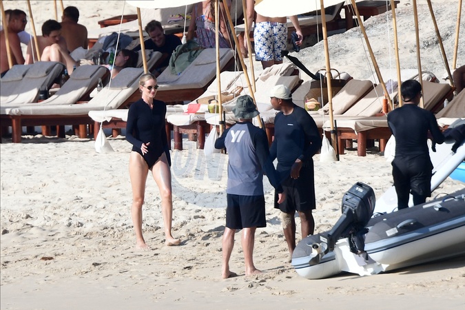 Exclusif - Prix spécial - No Web - Exclusif - Prix spécial - No Web - Jason Statham et sa compagne Rosie Huntington-Whiteley s'essaient à la planche volante ou foil électrique lors de leurs vacances à Phuket, Thaïlande le 2 janvier 2024. Exclusive - For Germany call for price - No web - Jason Statham and his partner Rosie Huntington-Whiteley try out an electric hoverboard or foil during their vacation in Phuket, Thailand on January 2, 2024.