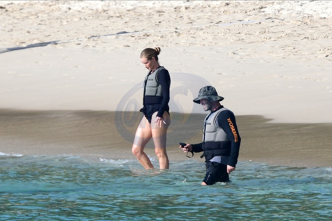 Exclusif - Prix spécial - No Web - Exclusif - Prix spécial - No Web - Jason Statham et sa compagne Rosie Huntington-Whiteley s'essaient à la planche volante ou foil électrique lors de leurs vacances à Phuket, Thaïlande le 2 janvier 2024. Exclusive - For Germany call for price - No web - Jason Statham and his partner Rosie Huntington-Whiteley try out an electric hoverboard or foil during their vacation in Phuket, Thailand on January 2, 2024.