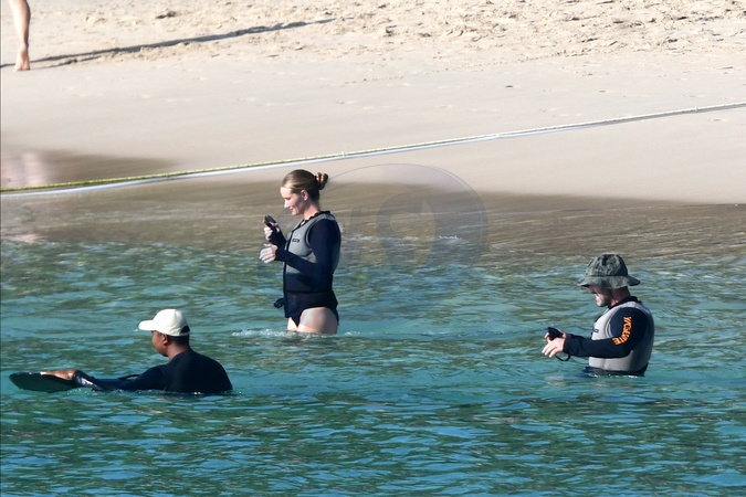 Exclusif - Prix spécial - No Web - Exclusif - Prix spécial - No Web - Jason Statham et sa compagne Rosie Huntington-Whiteley s'essaient à la planche volante ou foil électrique lors de leurs vacances à Phuket, Thaïlande le 2 janvier 2024. Exclusive - For Germany call for price - No web - Jason Statham and his partner Rosie Huntington-Whiteley try out an electric hoverboard or foil during their vacation in Phuket, Thailand on January 2, 2024.