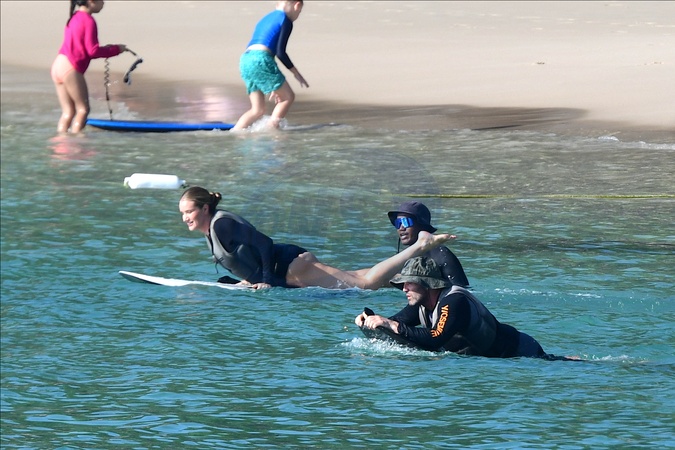 Exclusif - Prix spécial - No Web - Exclusif - Prix spécial - No Web - Jason Statham et sa compagne Rosie Huntington-Whiteley s'essaient à la planche volante ou foil électrique lors de leurs vacances à Phuket, Thaïlande le 2 janvier 2024. Exclusive - For Germany call for price - No web - Jason Statham and his partner Rosie Huntington-Whiteley try out an electric hoverboard or foil during their vacation in Phuket, Thailand on January 2, 2024.