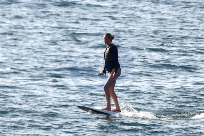 Exclusif - Prix spécial - No Web - Exclusif - Prix spécial - No Web - Jason Statham et sa compagne Rosie Huntington-Whiteley s'essaient à la planche volante ou foil électrique lors de leurs vacances à Phuket, Thaïlande le 2 janvier 2024. Exclusive - For Germany call for price - No web - Jason Statham and his partner Rosie Huntington-Whiteley try out an electric hoverboard or foil during their vacation in Phuket, Thailand on January 2, 2024.