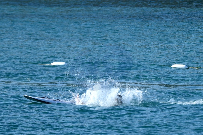 Exclusif - Prix spécial - No Web - Exclusif - Prix spécial - No Web - Jason Statham et sa compagne Rosie Huntington-Whiteley s'essaient à la planche volante ou foil électrique lors de leurs vacances à Phuket, Thaïlande le 2 janvier 2024. Exclusive - For Germany call for price - No web - Jason Statham and his partner Rosie Huntington-Whiteley try out an electric hoverboard or foil during their vacation in Phuket, Thailand on January 2, 2024.