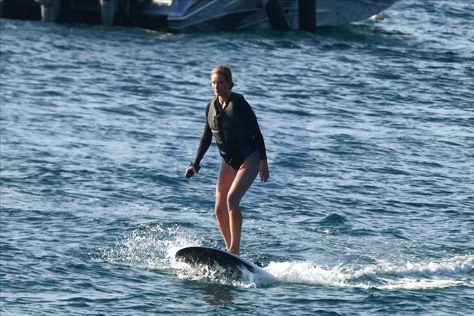 Exclusif - Prix spécial - No Web - Exclusif - Prix spécial - No Web - Jason Statham et sa compagne Rosie Huntington-Whiteley s'essaient à la planche volante ou foil électrique lors de leurs vacances à Phuket, Thaïlande le 2 janvier 2024. Exclusive - For Germany call for price - No web - Jason Statham and his partner Rosie Huntington-Whiteley try out an electric hoverboard or foil during their vacation in Phuket, Thailand on January 2, 2024.