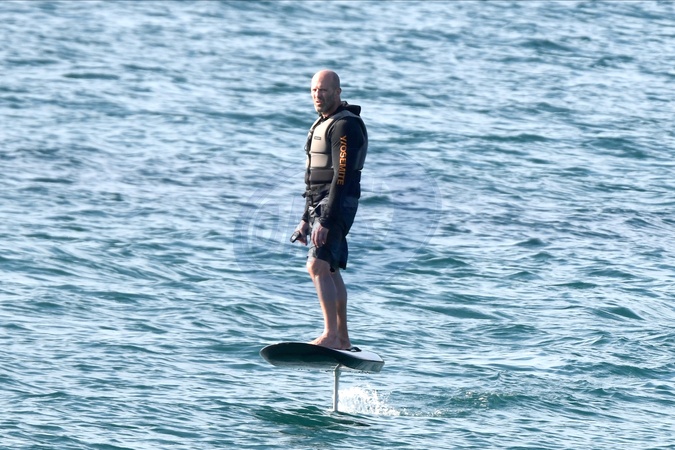 Exclusif - Prix spécial - No Web - Exclusif - Prix spécial - No Web - Jason Statham et sa compagne Rosie Huntington-Whiteley s'essaient à la planche volante ou foil électrique lors de leurs vacances à Phuket, Thaïlande le 2 janvier 2024. Exclusive - For Germany call for price - No web - Jason Statham and his partner Rosie Huntington-Whiteley try out an electric hoverboard or foil during their vacation in Phuket, Thailand on January 2, 2024.