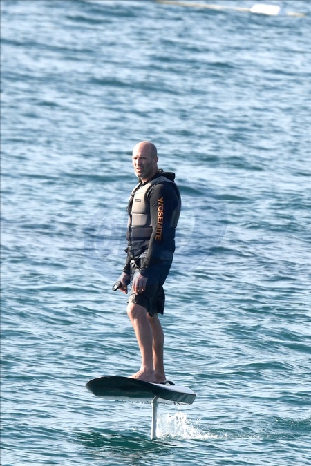 Exclusif - Prix spécial - No Web - Exclusif - Prix spécial - No Web - Jason Statham et sa compagne Rosie Huntington-Whiteley s'essaient à la planche volante ou foil électrique lors de leurs vacances à Phuket, Thaïlande le 2 janvier 2024. Exclusive - For Germany call for price - No web - Jason Statham and his partner Rosie Huntington-Whiteley try out an electric hoverboard or foil during their vacation in Phuket, Thailand on January 2, 2024.