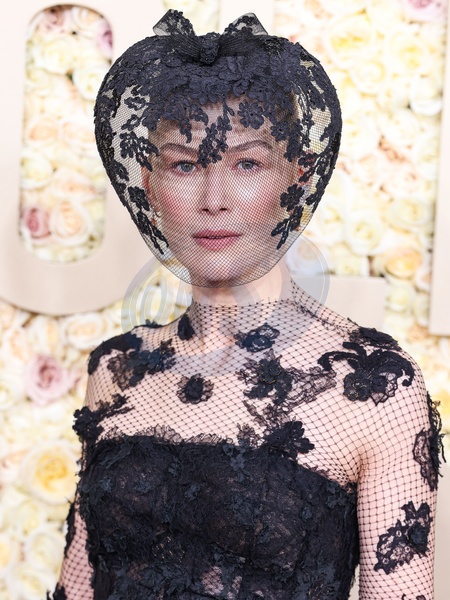 BEVERLY HILLS, LOS ANGELES, CALIFORNIA, USA - JANUARY 07: Rosamund Pike wearing Dior arrives at the 81st Annual Golden Globe Awards held at The Beverly Hilton Hotel on January 7, 2024 in Beverly Hills, Los Angeles, California, United States., Credit:Xavier Collin / Avalon