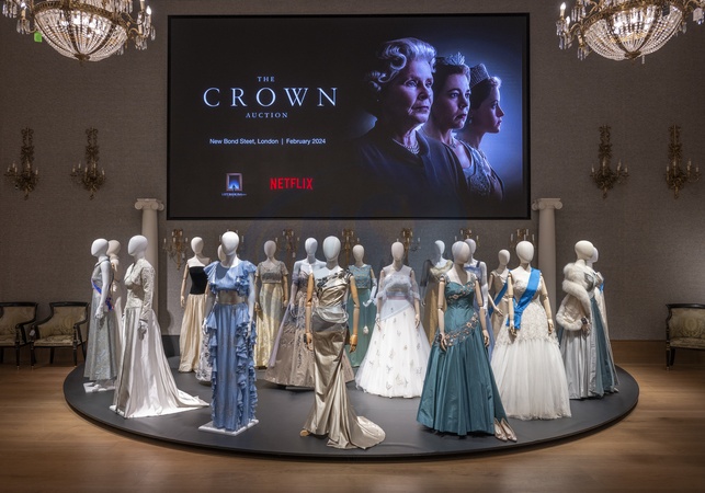 Bonhams, London, UK. 9th Jan, 2024. Experience the exceptional craftmanship and creativity behind The Crown with a special exhibition of the sets, costumes and props from series 1–6, touring New York, Los Angeles, Paris and London ahead of two auctions at Bonhams London in February 2024. The exhibition runs from 11 Jan – 5 Feb 2024 in London. Proceeds from the live auction will go towards establishing the Left Bank Pictures – The Crown Scholarship programme at the National Film and Television School., Credit:MALCOLM PARK / Avalon