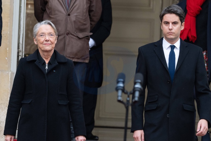 Przekazanie władzy pomiędzy byłą premier Elisabeth Borne a nowym premierem Gabrielem Attalem w Hôtel de Matignon w Paryżu.