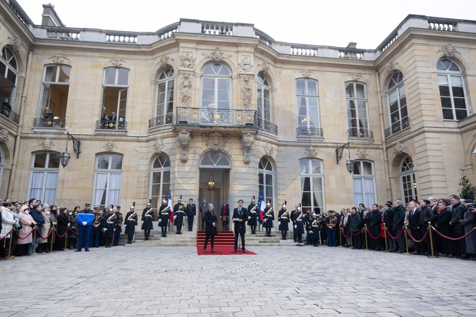 Przekazanie władzy pomiędzy byłą premier Elisabeth Borne a nowym premierem Gabrielem Attalem w Hôtel de Matignon w Paryżu.
