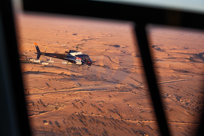 TV helicopter during the Stage 4 of the Dakar 2024 on January 9, 2024 between Al Salamiya and Al-Hofuf, Saudi Arabia. © Frédéric Le Floc'h/DPPI/Panoramic/Bestimage