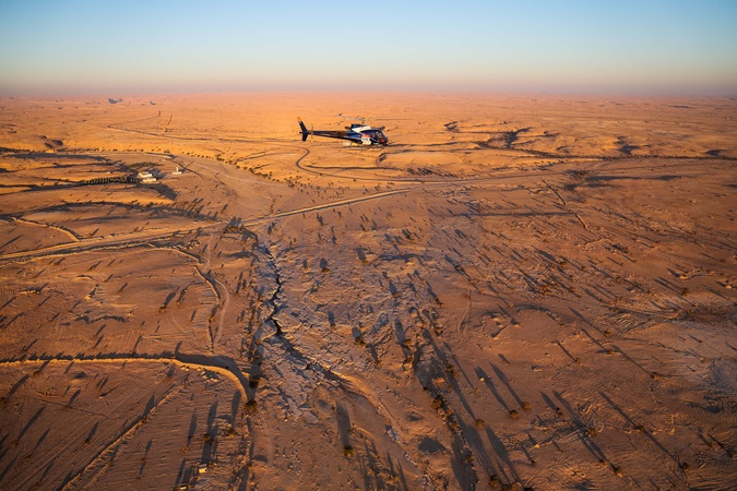TV helicopter during the Stage 4 of the Dakar 2024 on January 9, 2024 between Al Salamiya and Al-Hofuf, Saudi Arabia. © Frédéric Le Floc'h/DPPI/Panoramic/Bestimage
