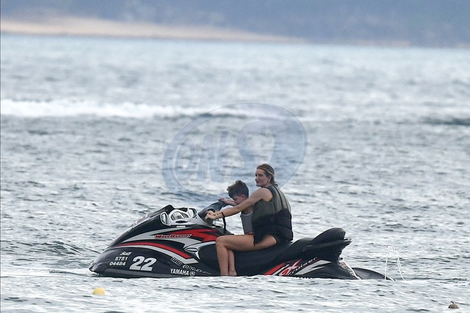 Exclusif - Prix spécial - No Web - Rosie Huntington-Whiteley fait un tour à jet-ski avec son fils Jack lors de leurs vacances à Phuket