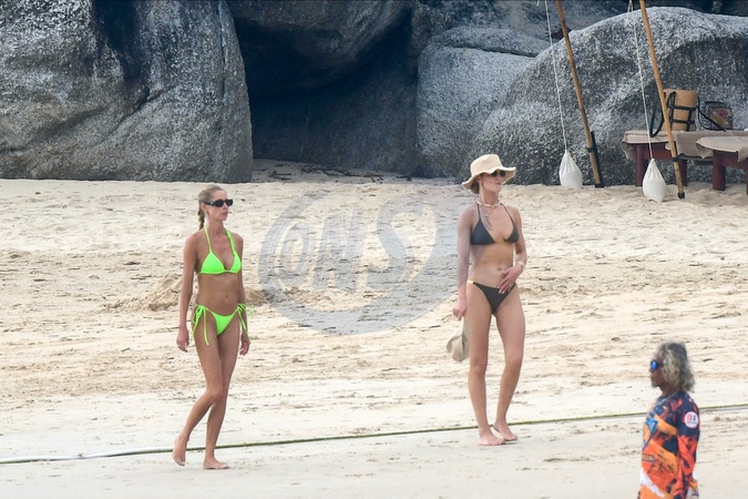 Exclusif - Prix spécial - No Web - Rosie Huntington-Whiteley fait un tour à jet-ski avec son fils Jack lors de leurs vacances à Phuket le 28 décembre 2023. Exclusive - No web For Germany call for price Rosie Huntington-Whiteley takes a jet-ski ride with her son Jack during their holiday in Phuket on 28 December 2023. — Please pixelate children face prior to publication —
