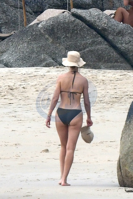 Exclusif - Prix spécial - No Web - Rosie Huntington-Whiteley fait un tour à jet-ski avec son fils Jack lors de leurs vacances à Phuket le 28 décembre 2023. Exclusive - No web For Germany call for price Rosie Huntington-Whiteley takes a jet-ski ride with her son Jack during their holiday in Phuket on 28 December 2023. — Please pixelate children face prior to publication —