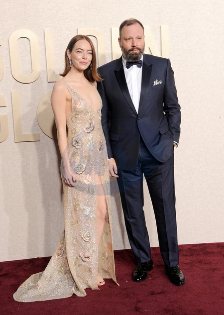 Emma Stone and Yorgos Lanthimos at the 81st Annual Golden Globe Awards held at the Beverly Hilton Hotel in Beverly Hills, USA on January 7, 2024., Credit:Lumeimages.com / Avalon