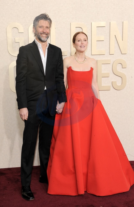 Julianne Moore and Bart Freundlich at the 81st Annual Golden Globe Awards held at the Beverly Hilton Hotel in Beverly Hills, USA on January 7, 2024., Credit:Lumeimages.com / Avalon